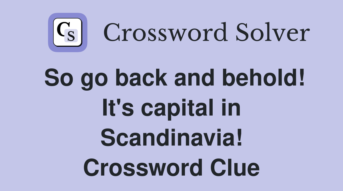 So go back and behold It s capital in Scandinavia Crossword Clue