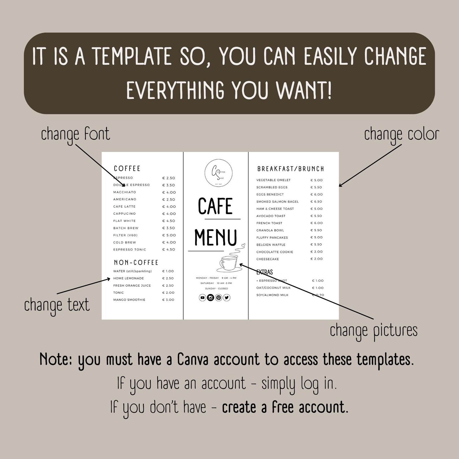Cafe menu template editable text Premium Editable Template rawpixel