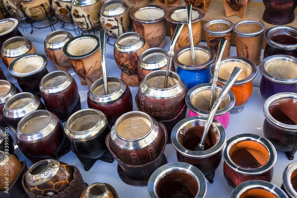 quot Mate quot souvenirs for sale in a street market in Montevideo Uruguay