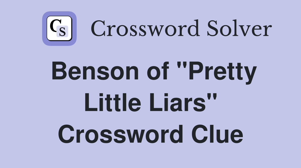 Benson of quot Pretty Little Liars quot Crossword Clue Answers Crossword Solver