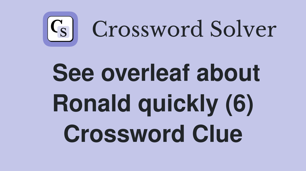 See overleaf about Ronald quickly (6) Crossword Clue Answers