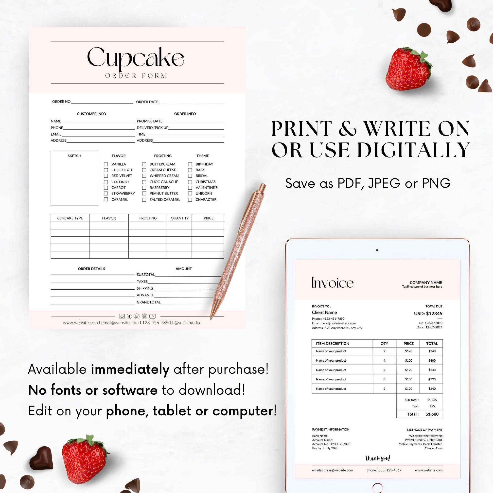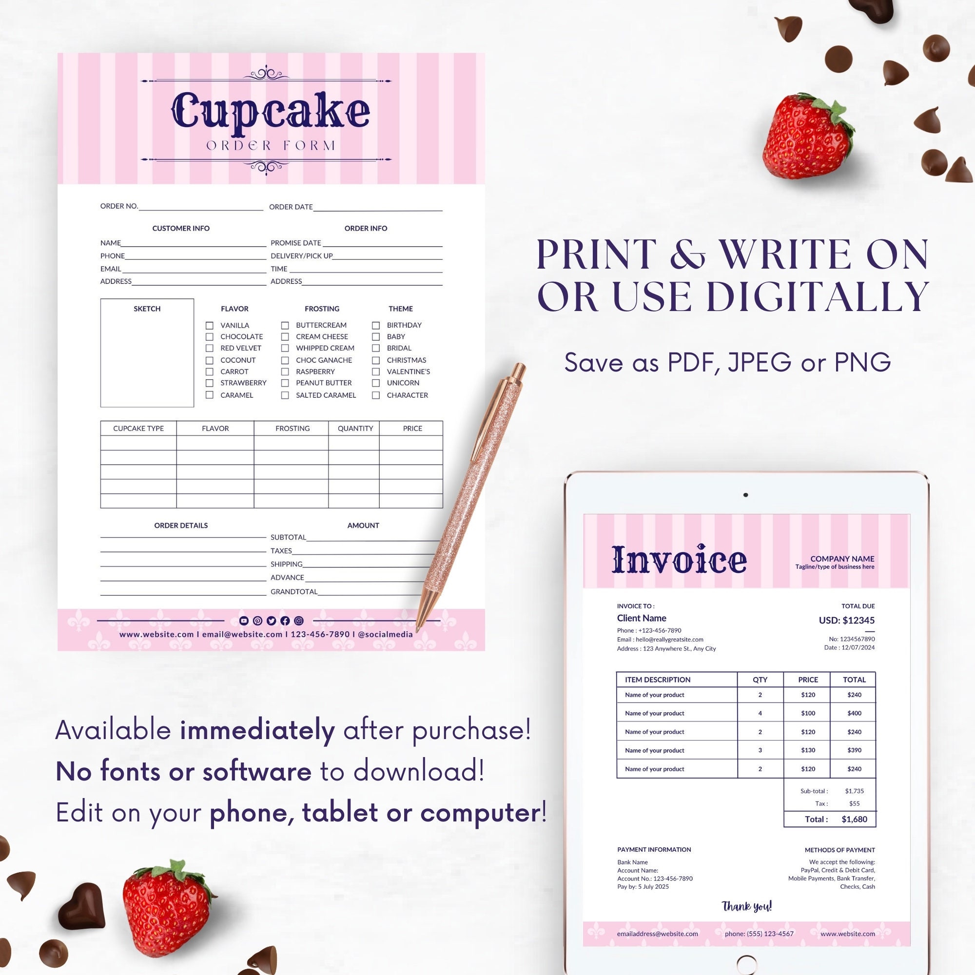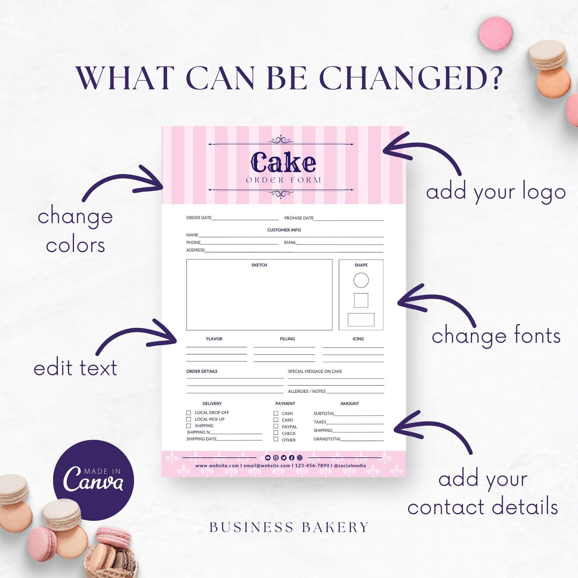 Editable Cake Order Form Template Bakery Order Form Receipt Etsy