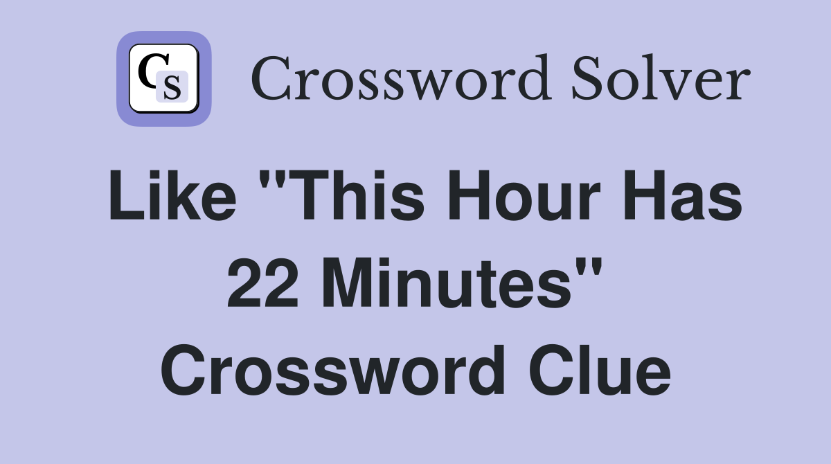 Like quot This Hour Has 22 Minutes quot Crossword Clue Answers Crossword Solver