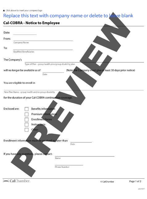 Cal COBRA Notice to Employee HRCalifornia