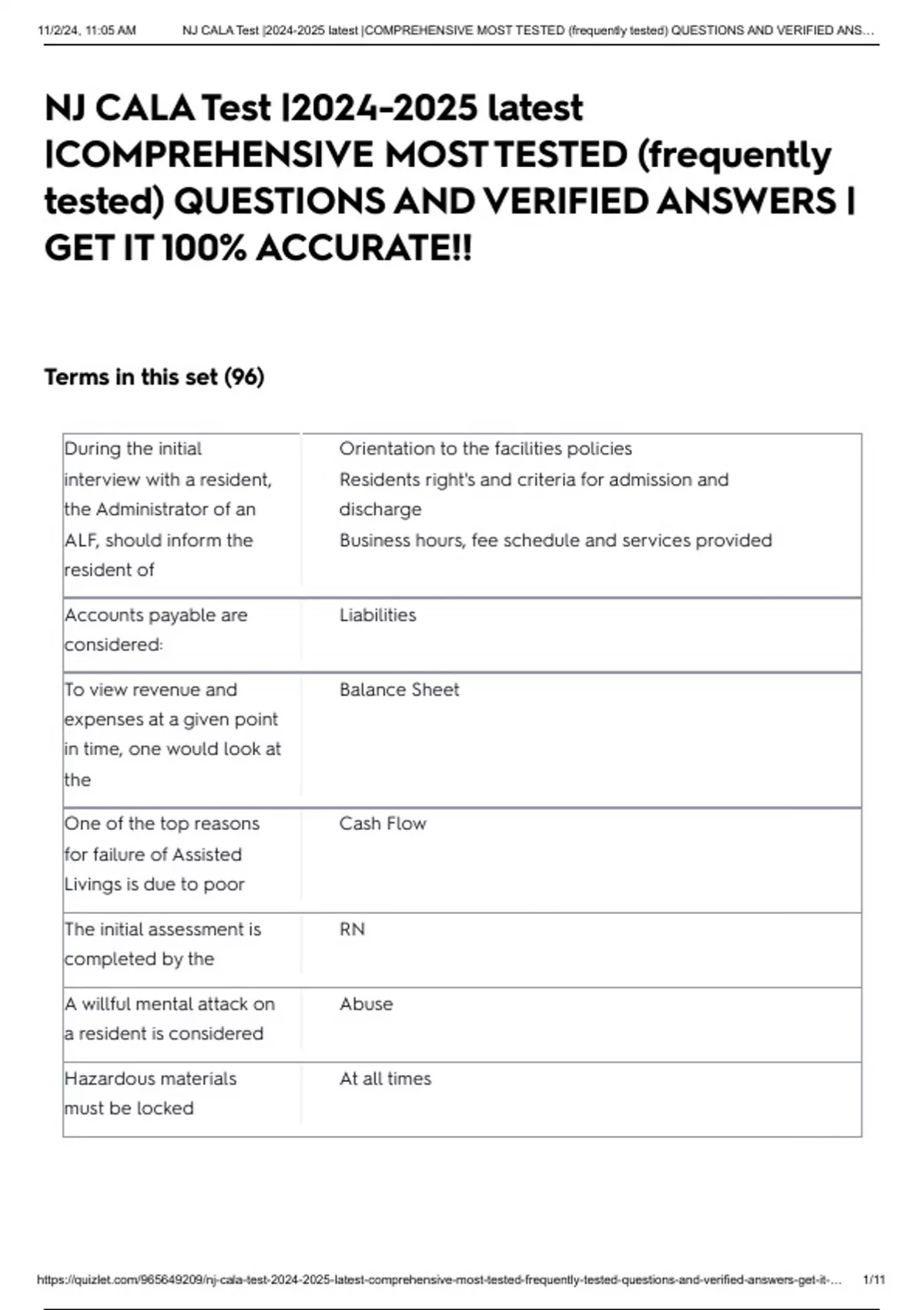 NJ CALA (CERTIFIED ASSISTED LIVING ADMINISTRATOR) FINAL AND PRACTICE