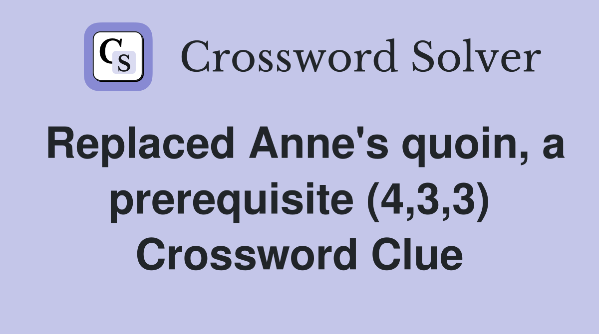 Replaced Anne #39 s quoin a prerequisite (4 3 3) Crossword Clue Answers