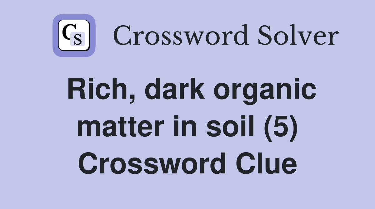 Rich dark organic matter in soil (5) Crossword Clue Answers