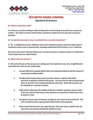 Questions Answers About Securities Based Lending PDF Stocks and