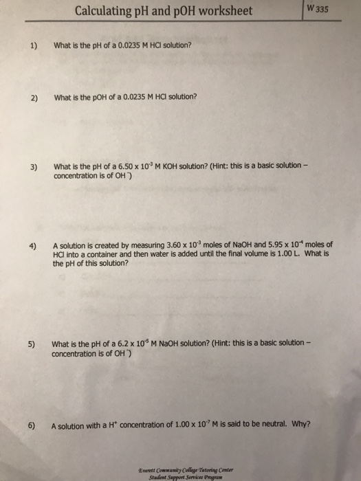 Solved) Calculating Ph and PoH worksheet Calculating Ph and