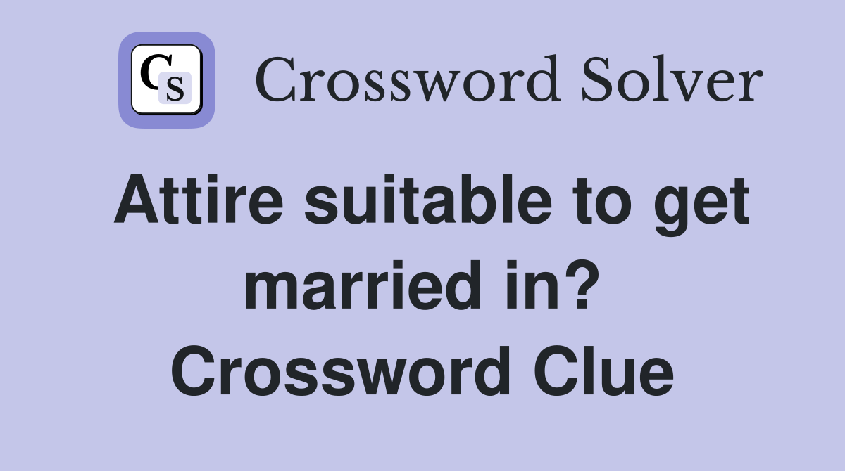 Attire suitable to get married in? Crossword Clue Answers Crossword