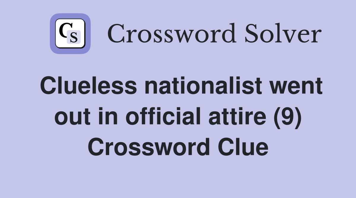 Clueless nationalist went out in official attire (9) Crossword Clue