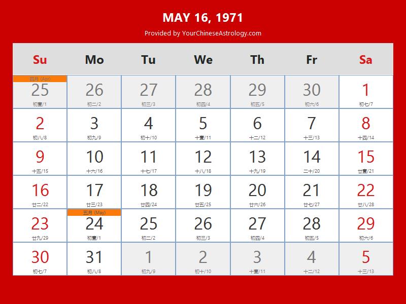 Chinese Calendar May 16 1971: Auspicious Things to Do and Hours Bazi