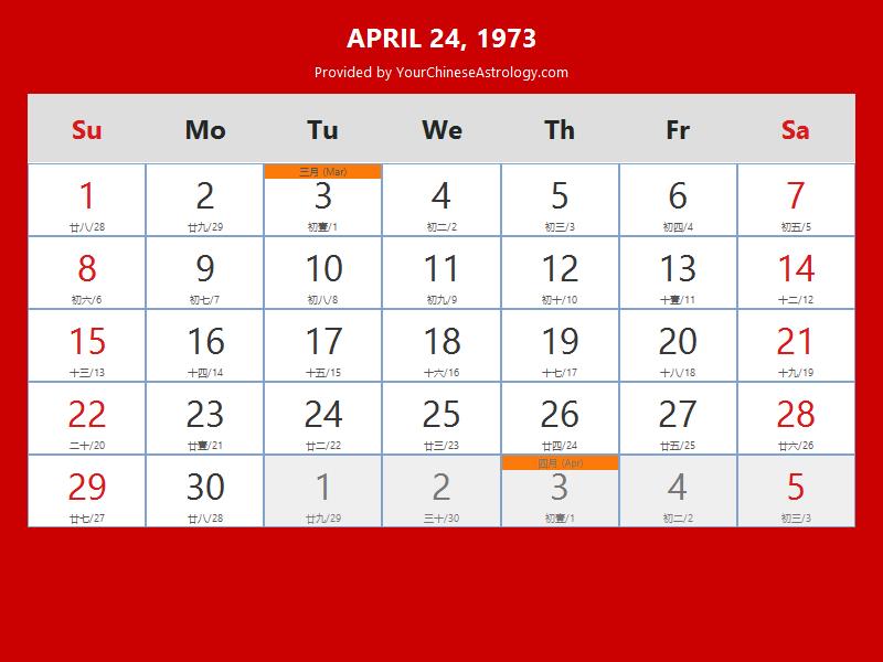 Chinese Calendar Apr 24 1973: Auspicious Things to Do and Hours Bazi