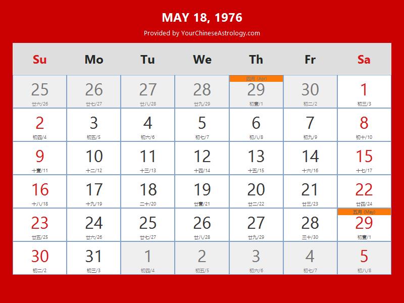 Chinese Calendar May 18 1976: Auspicious Things to Do and Hours Bazi