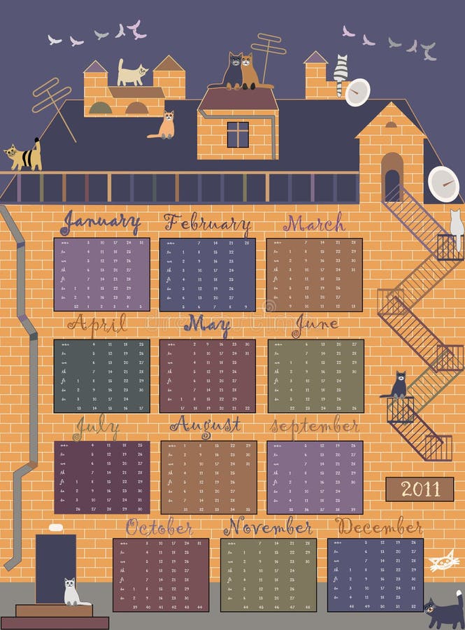 2010 Set of 12 Themed Calendars Stock Illustration Illustration of