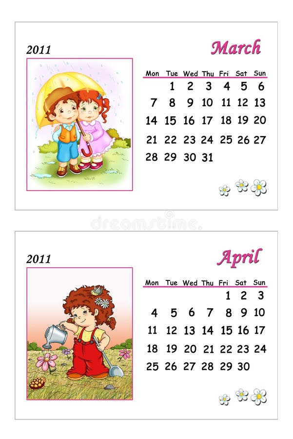 Tender Calendar 2011 March and April Stock Illustration