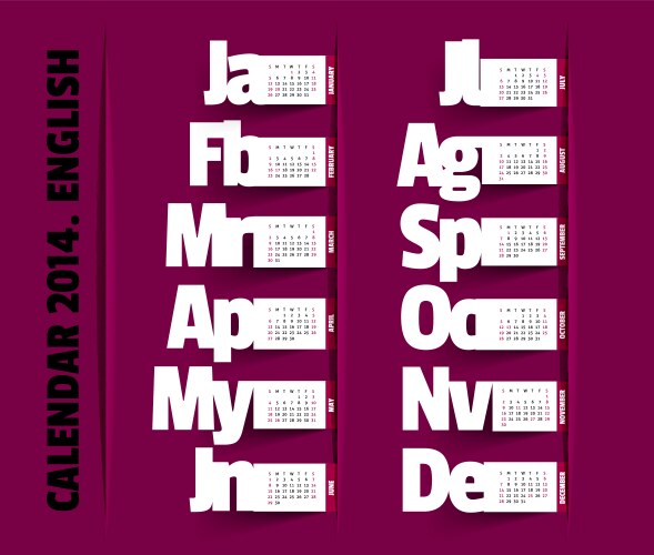 Calendar 2014 Monthly Layout Royalty Free Vector Image