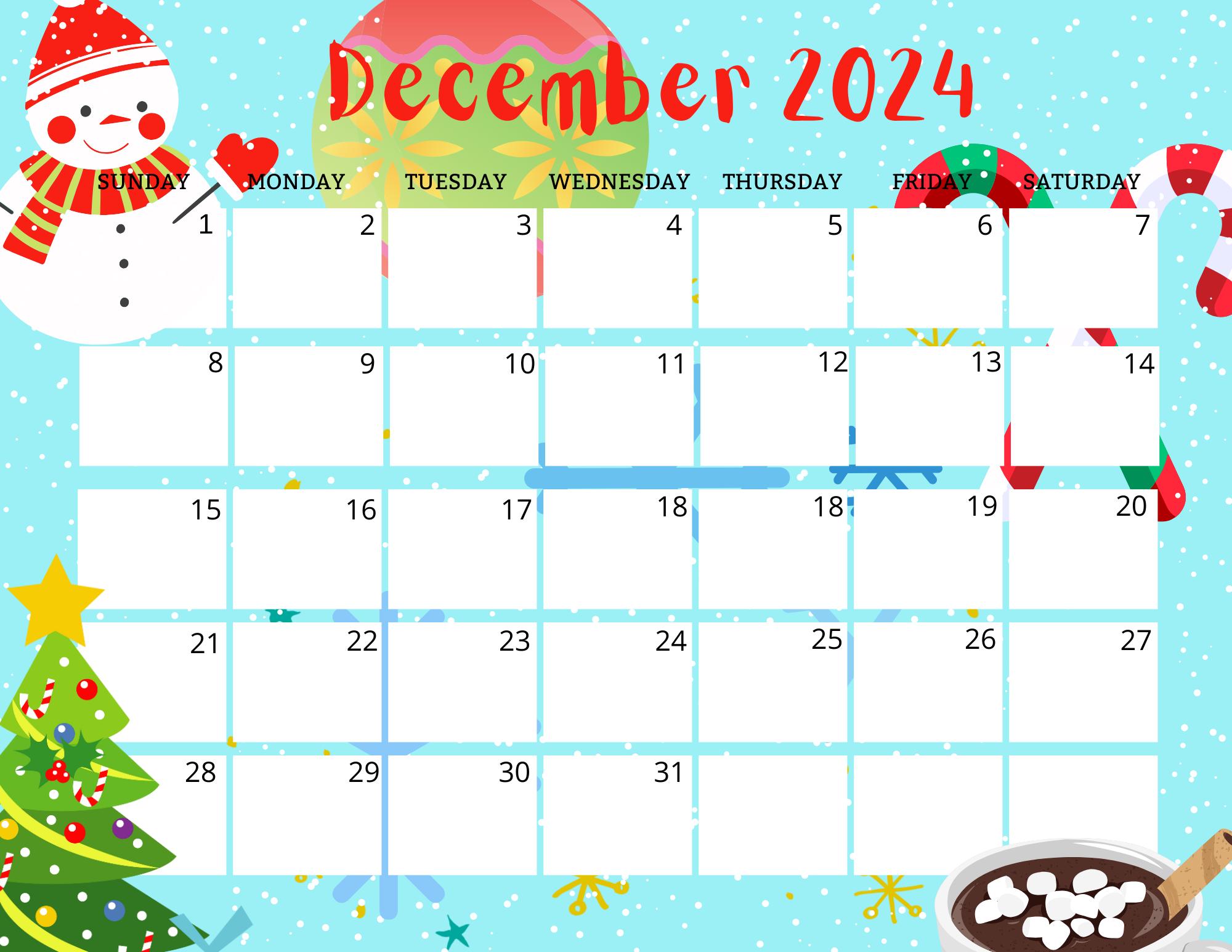 December 2024 Calendar Editable Cute Printable Winter Snowman