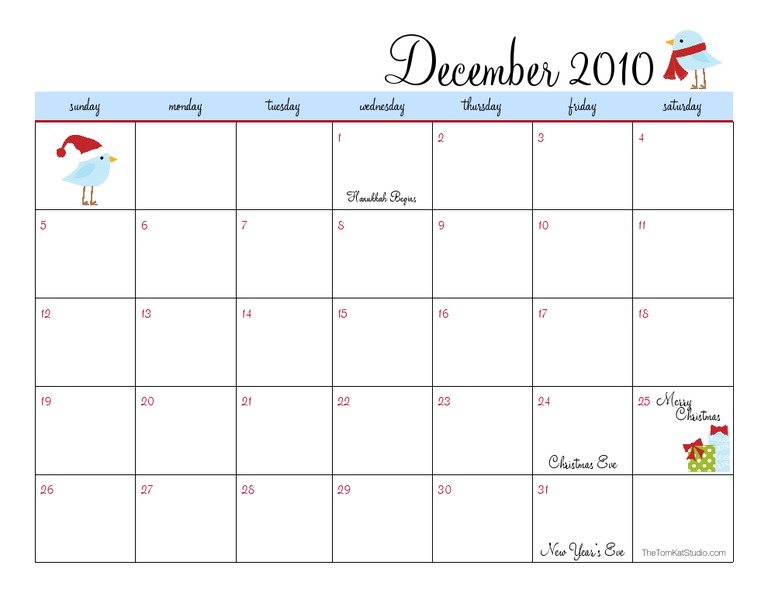 December 2010 Calendar TomKat Studio PDF