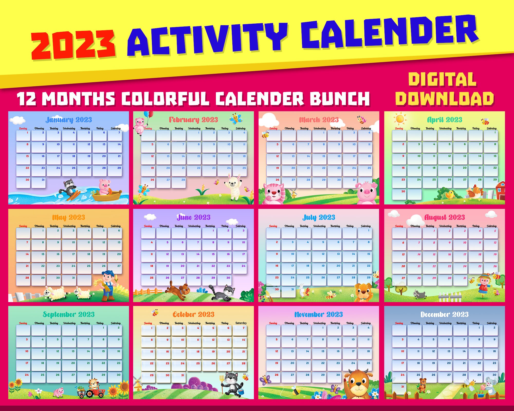 Printable 2023 Calendars Kids Activity Calendar 2023 Calendar 12