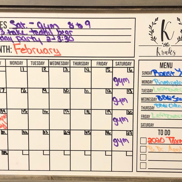Personalized Dry Erase Wall Calendar With Custom to Do List and Notes