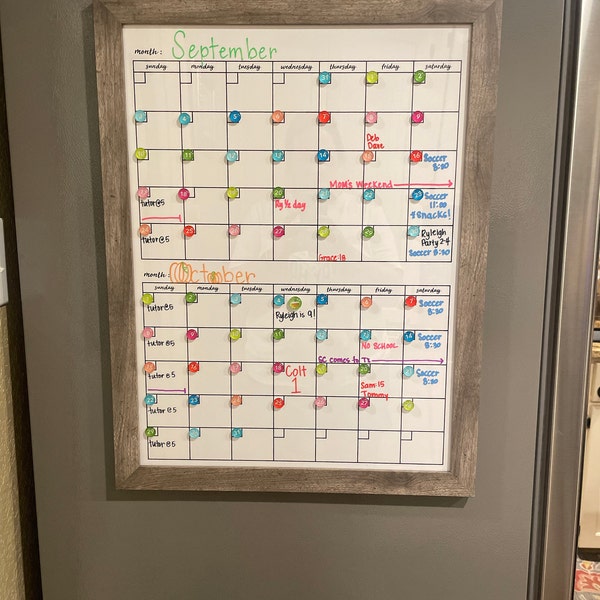 Whiteboard Calendar FRAMED Customizable Vertical Dry erase Board