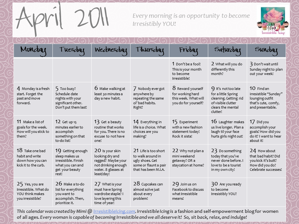 APRIL 2011 CALENDAR OF THE MONTH: FREE PRINTABLE APRIL CALENDAR OF THE