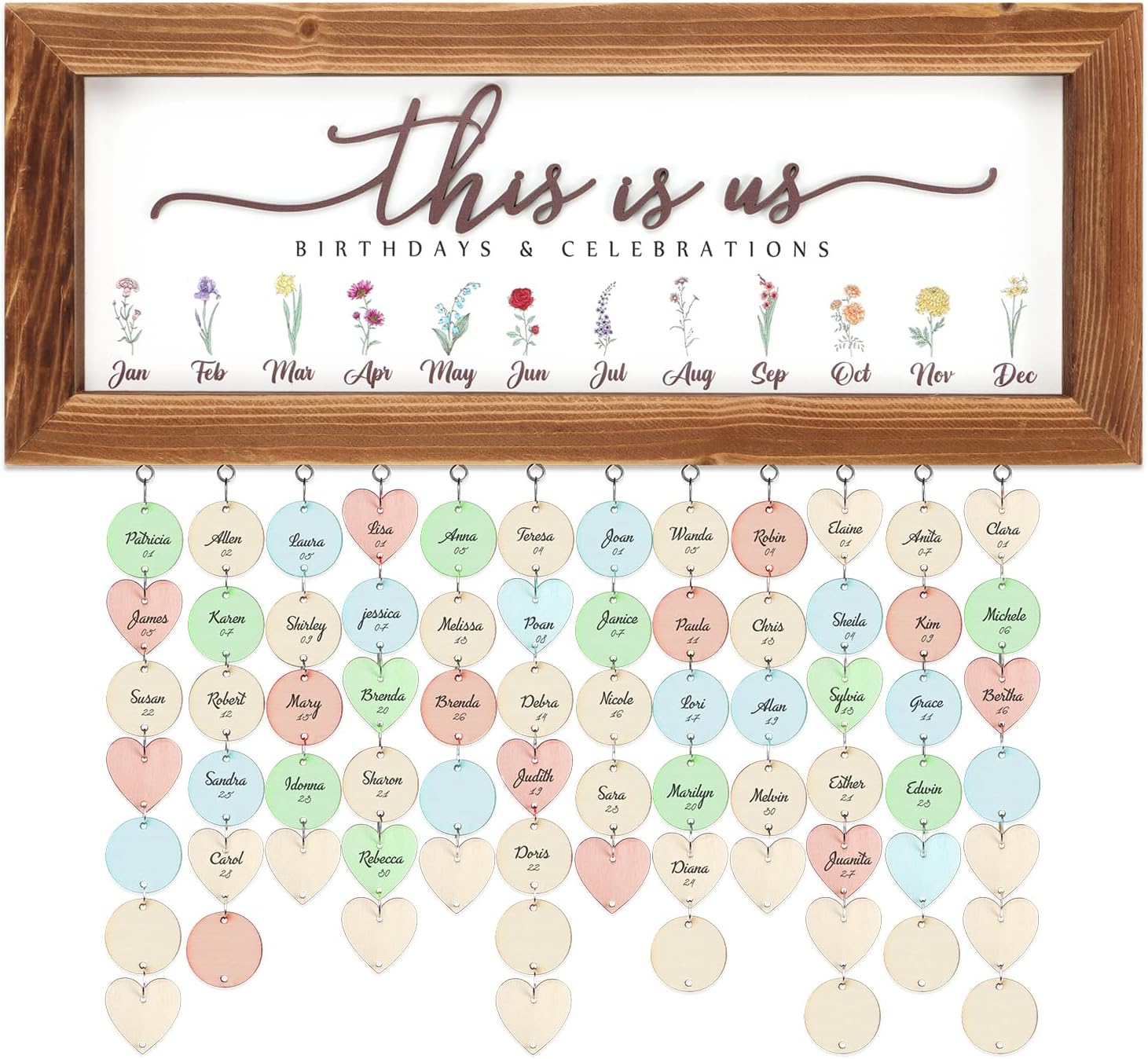 Buecasa Wooden Family Birthday Reminder Calendar Board Wall Hanging