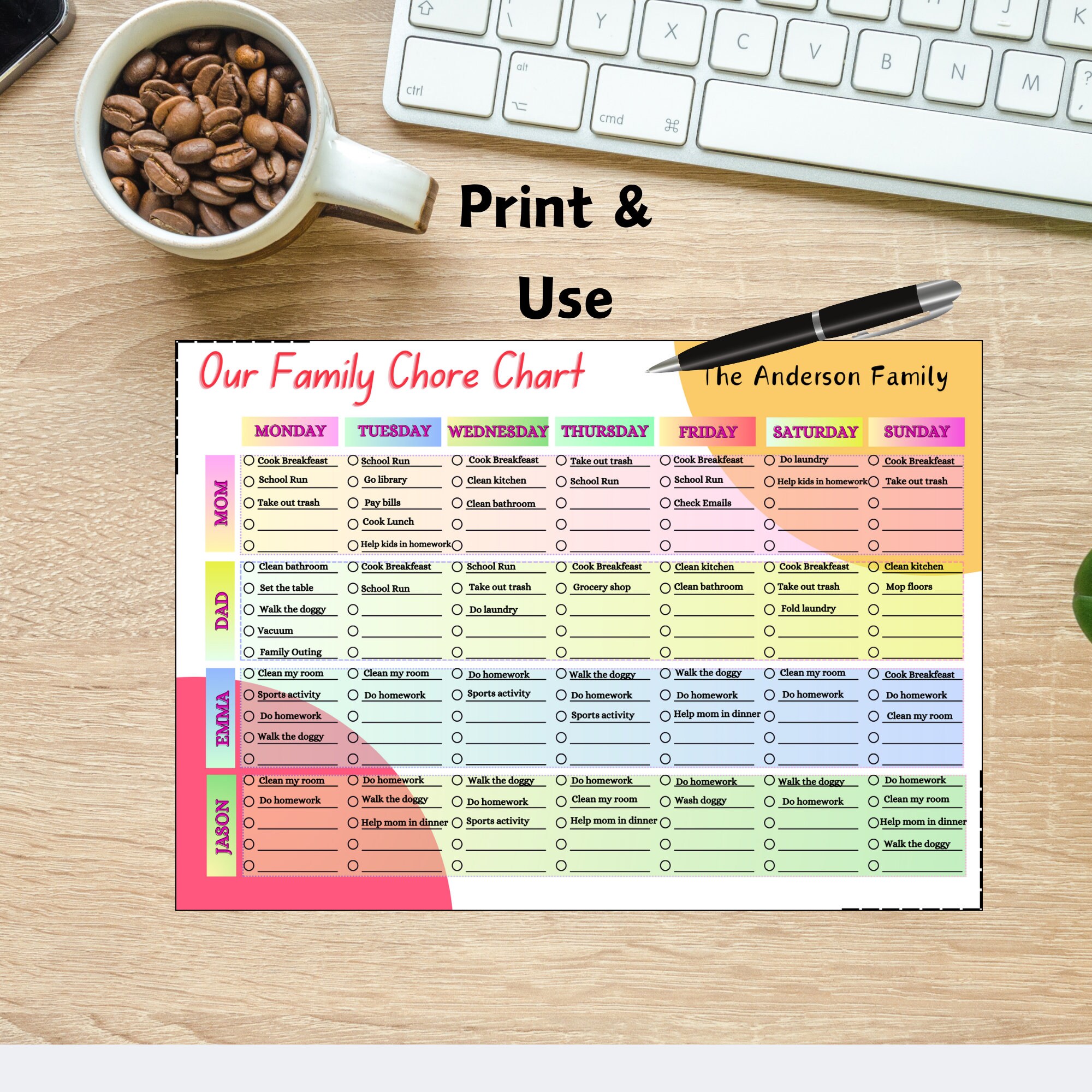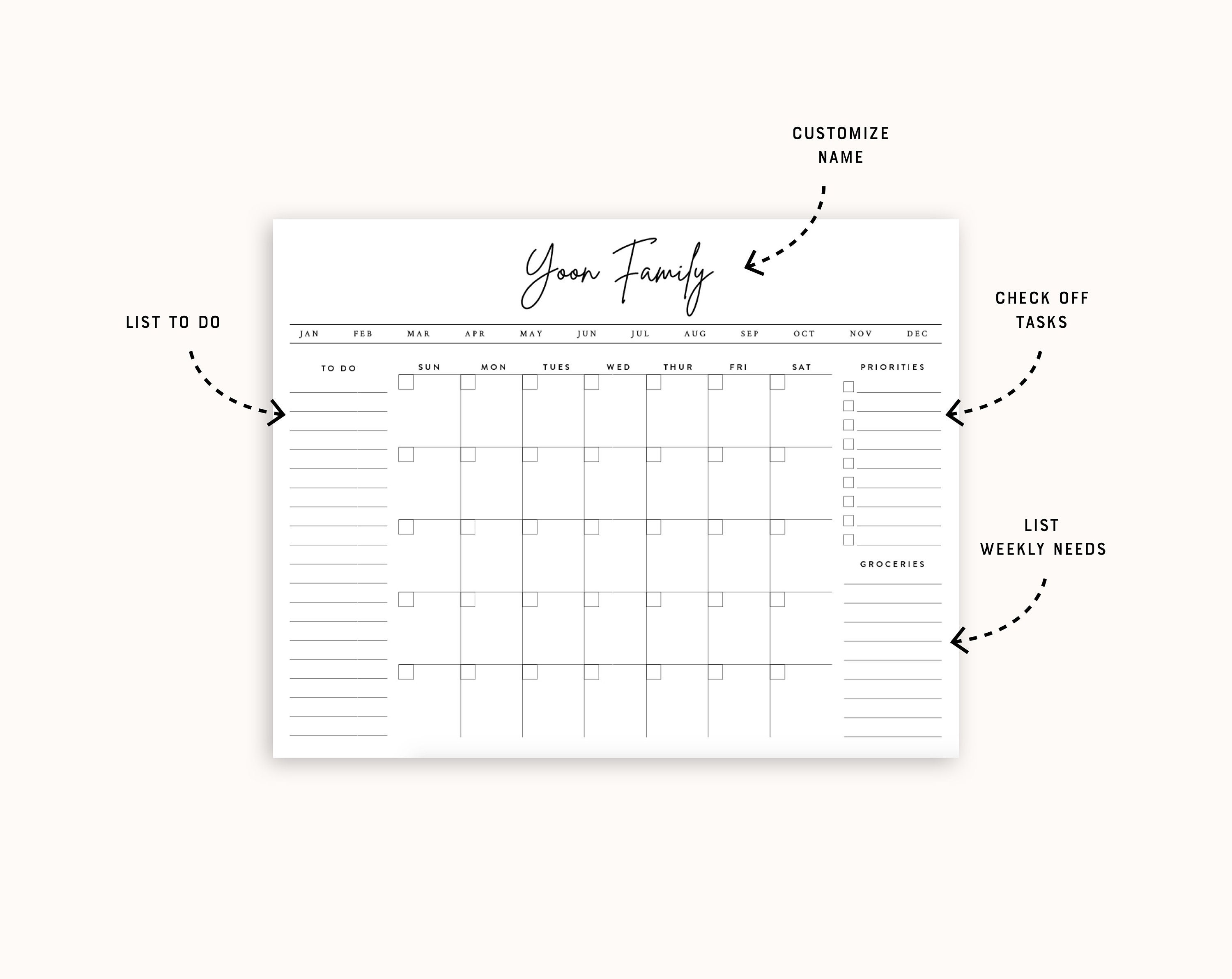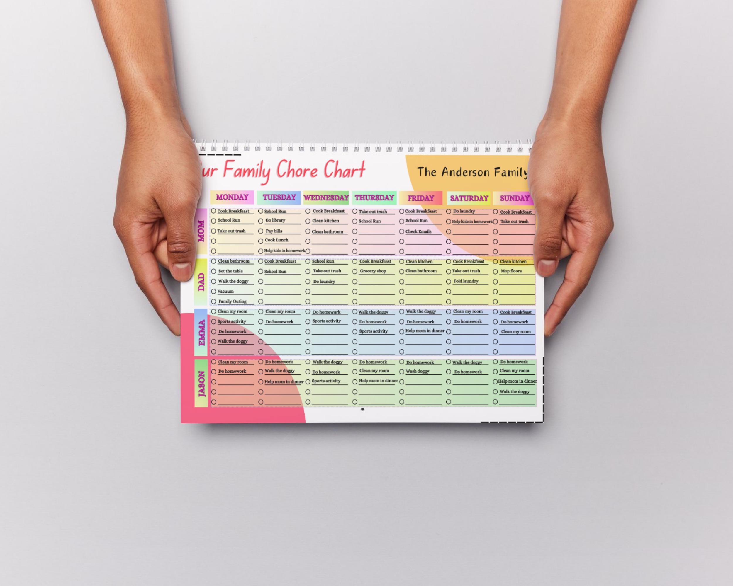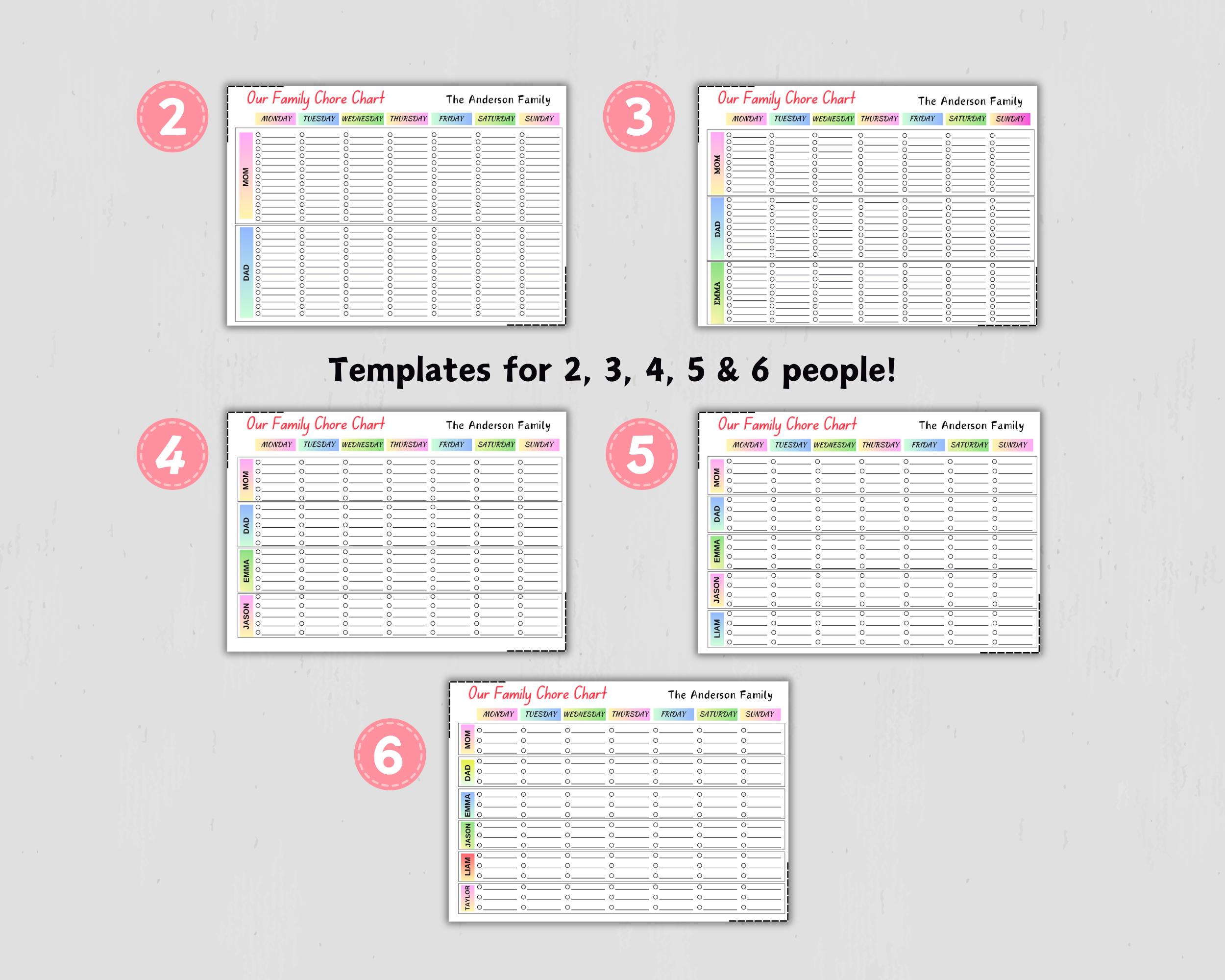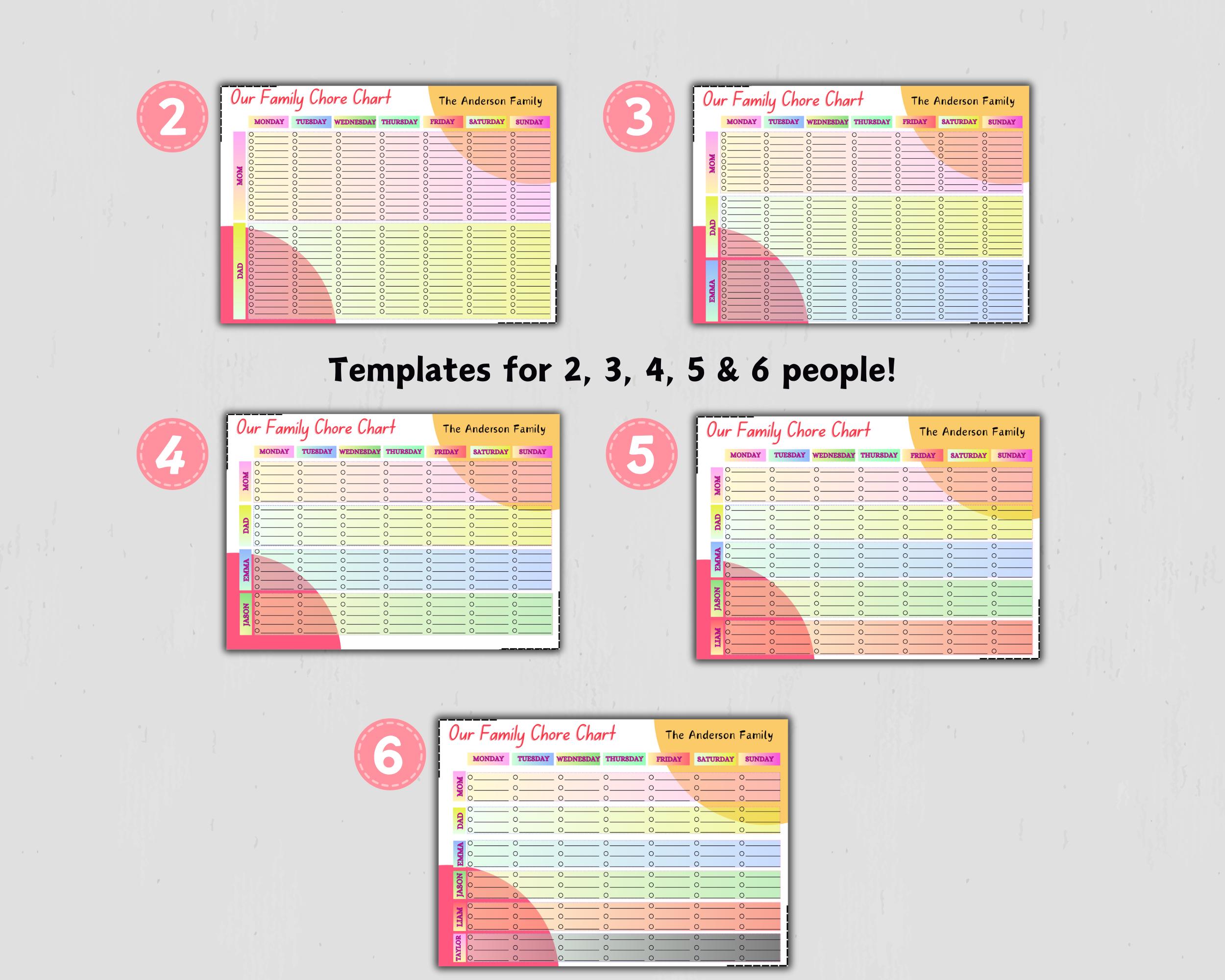 Family Calendar Chore Chart Editable Customizable Etsy