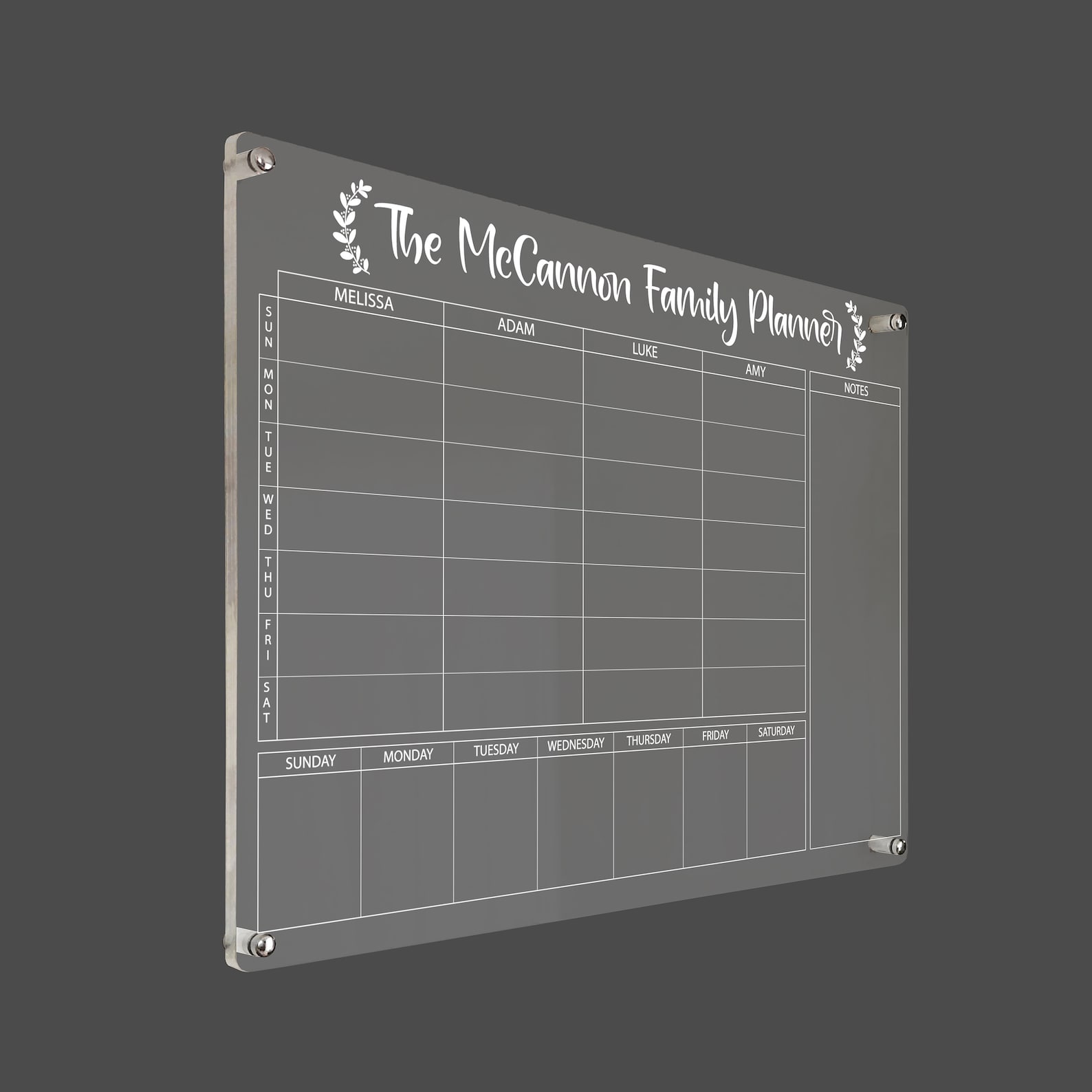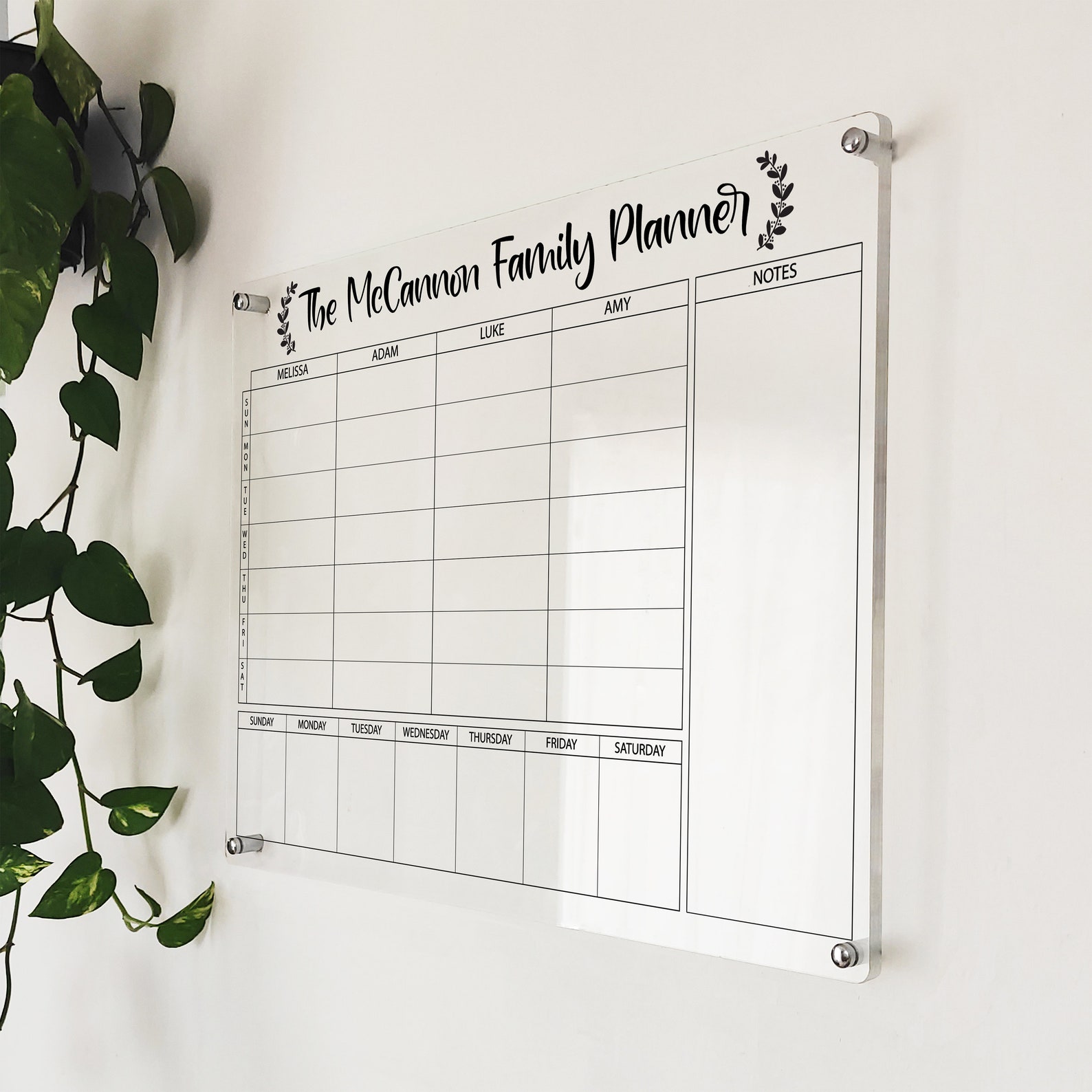 Family Chore Chart Acrylic Family Calendar Large Weekly Etsy