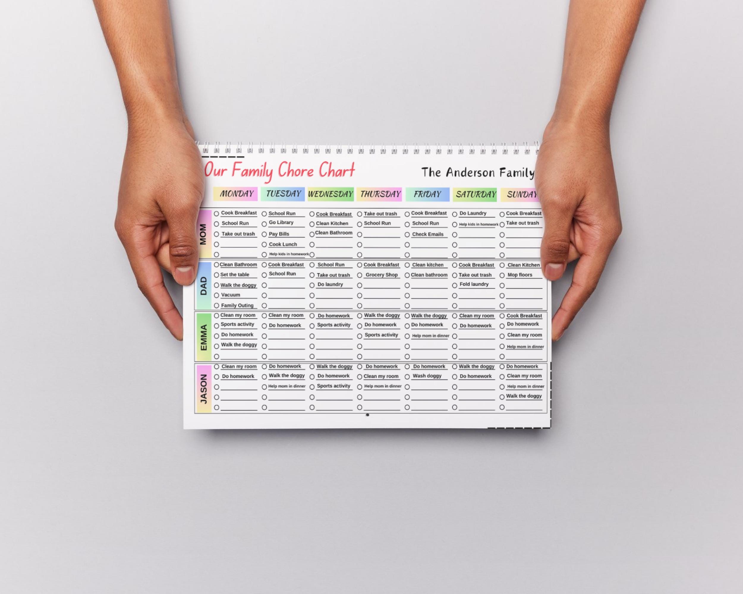 Family Chore Chart Printable Editable Weekly Household Calendar Sched