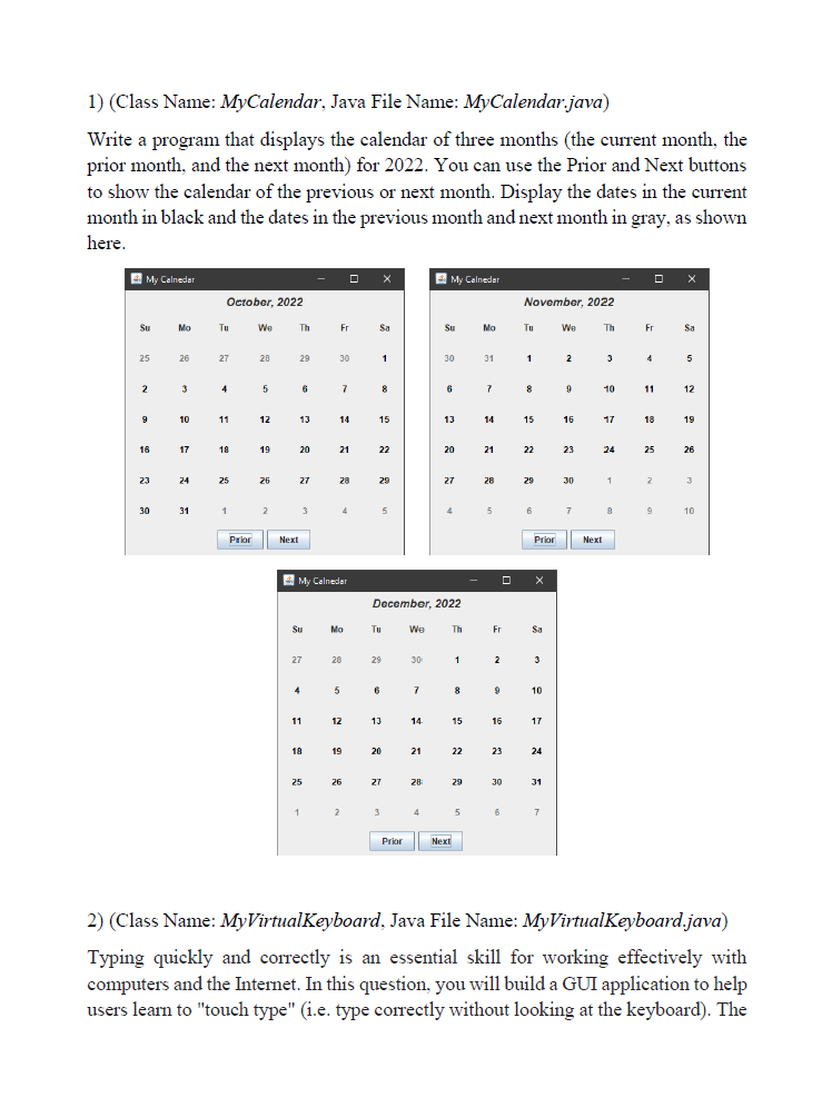 Solved 1) (Class Name: MyCalendar Java File Name: Chegg com