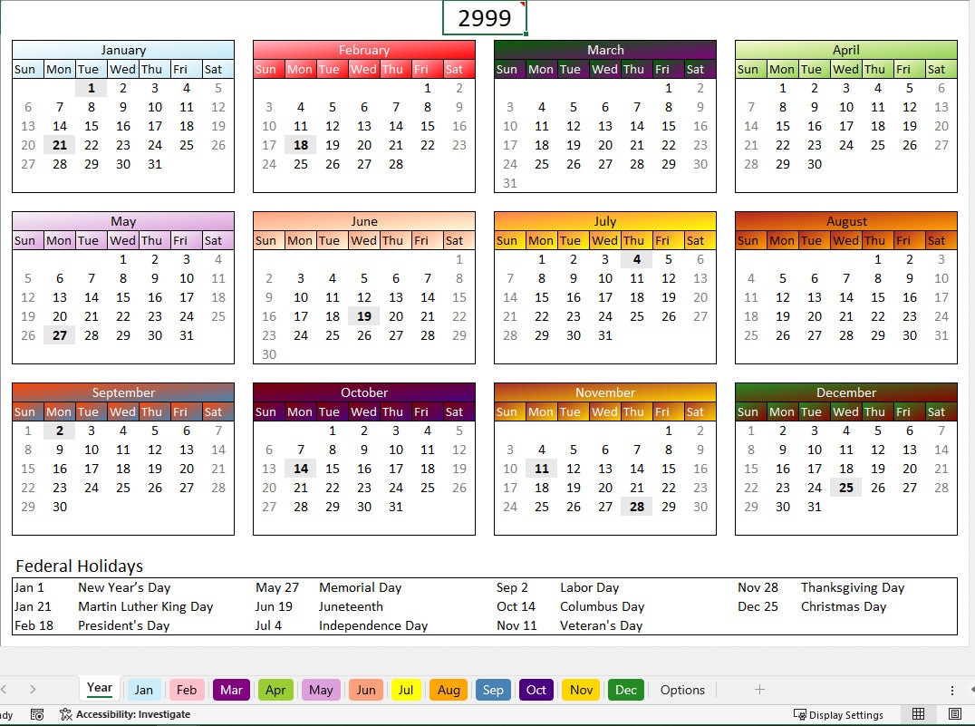 Forever Printable Calendar Simple Excel Spreadsheet Digital