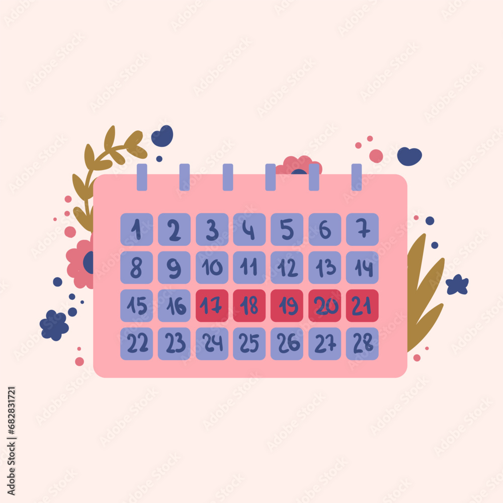 Sanitary Napkin Or Feminine Sanitary Pad On Calendar With Red Heart