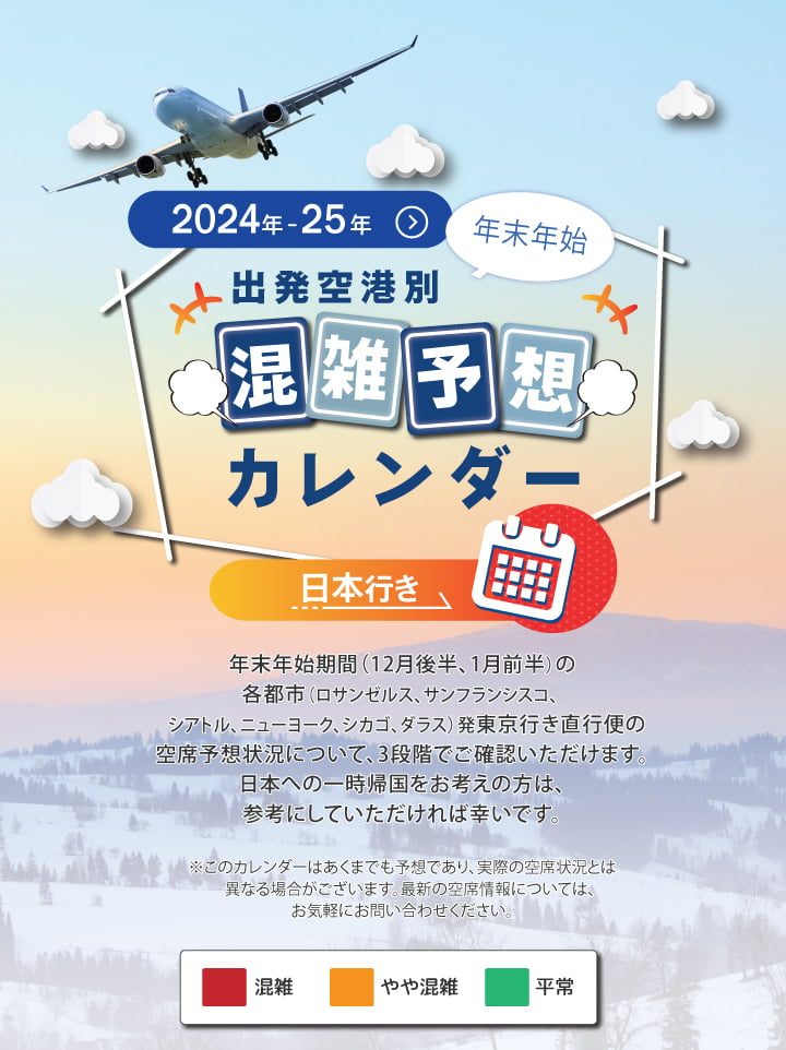 2024年 25年 年末年始 出発空港別日本行き混雑予想カレンダー IACE TRAVEL