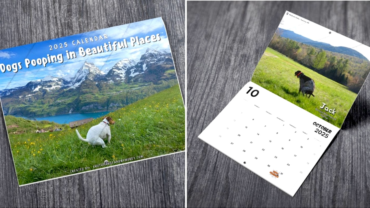 2025 Calendar ~ Dogs Pooping In Beautiful Places #4758662747