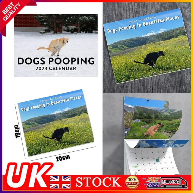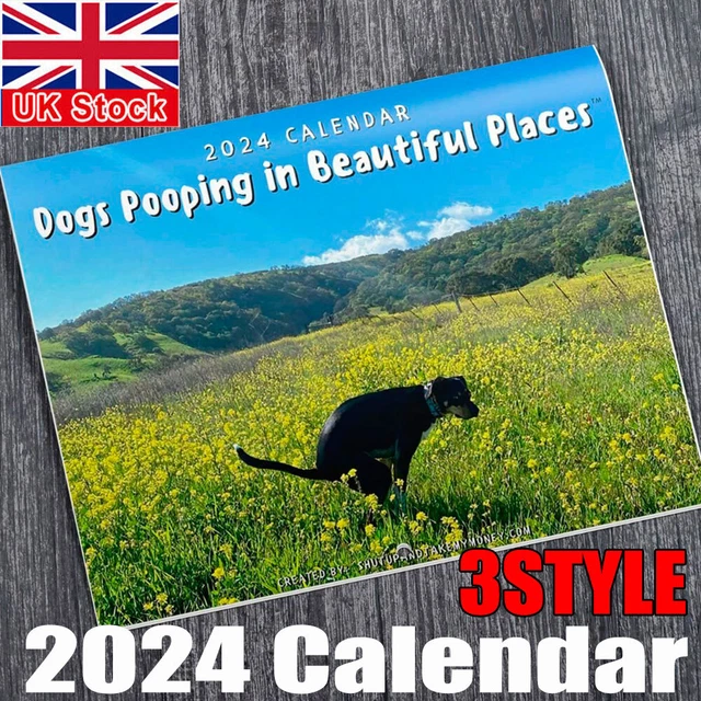 1Pcs 2024 Calendar Dogs Pooping in Beautiful Places Wall Calendar