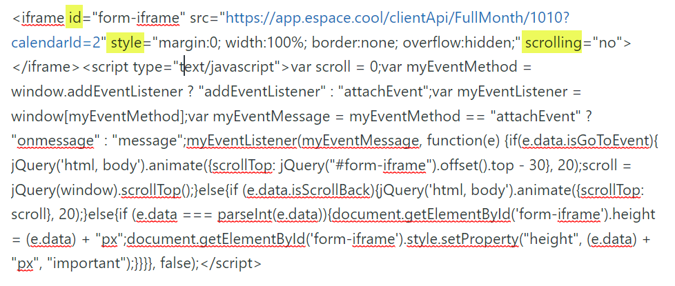 Calendar Embed Code