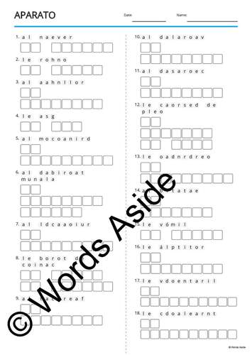 Spanish Word Games Copy Crossword Word Search Anagram APPLIANCES by