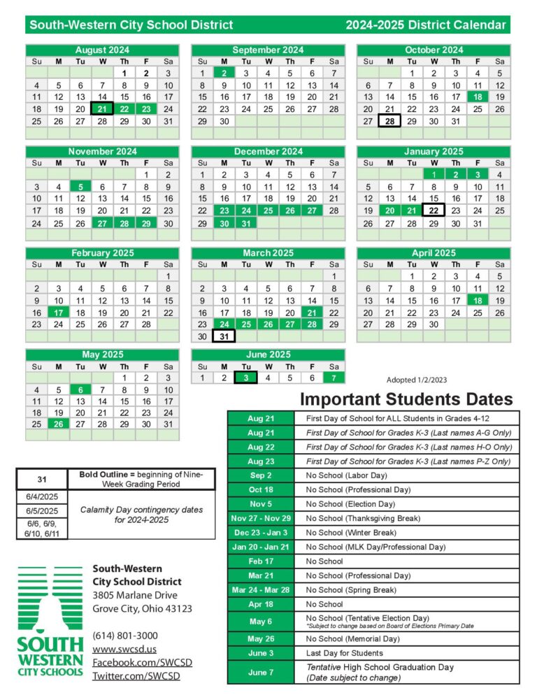 South Western City School District Calendar 2025 2026 in PDF