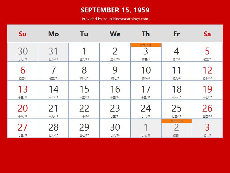Chinese Calendar Sep 15 1959: Auspicious Things to Do and Hours Bazi