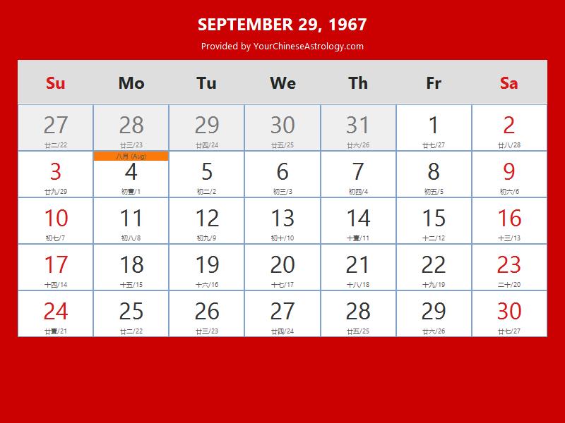 Chinese Calendar Sep 29 1967: Auspicious Things to Do and Hours Bazi