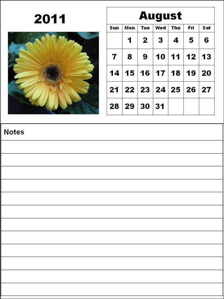 august 2011 calendar image