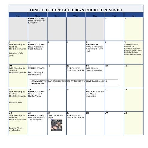 June 2018 calendar PDF