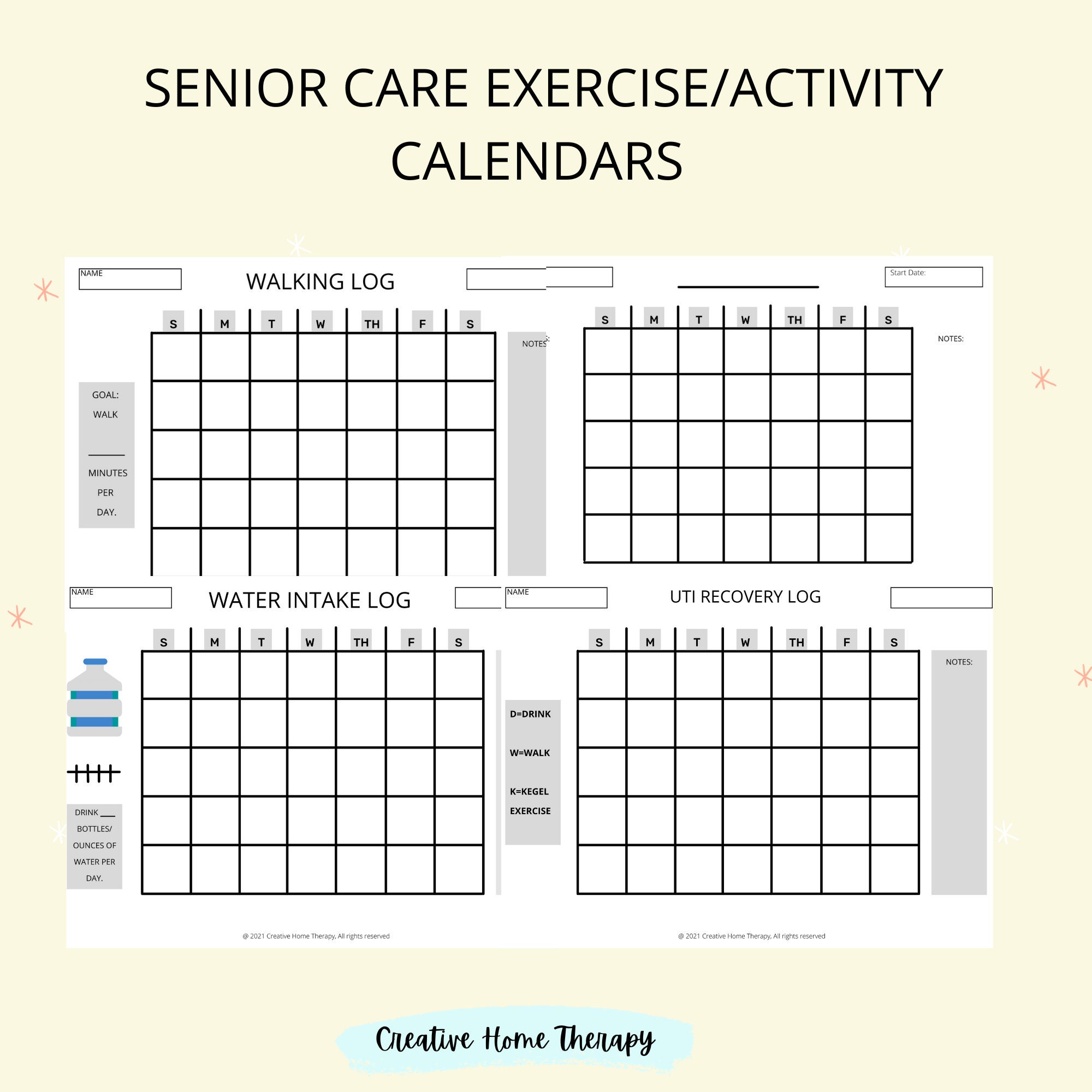 Senior Care Calendar Packet Exercise Log Activity Tracker for Etsy
