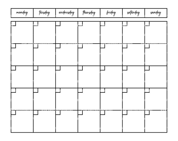 2 Blank Monthly Calendar Printable Landscape Etsy