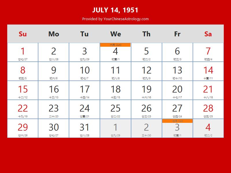 Chinese Calendar Jul 14 1951: Auspicious Things to Do and Hours Bazi
