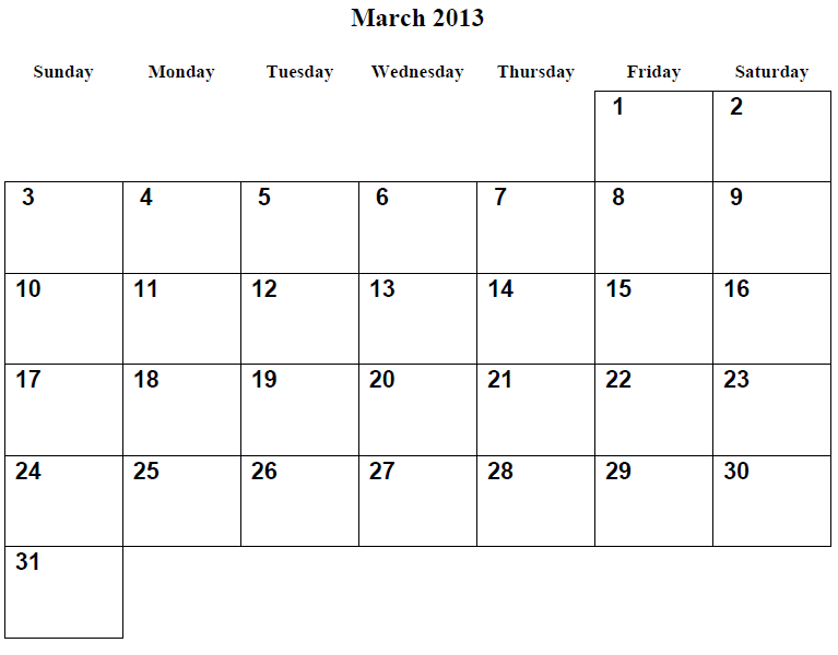 9 Best Images of March Printable Calendar 2013 March 2013 Calendar