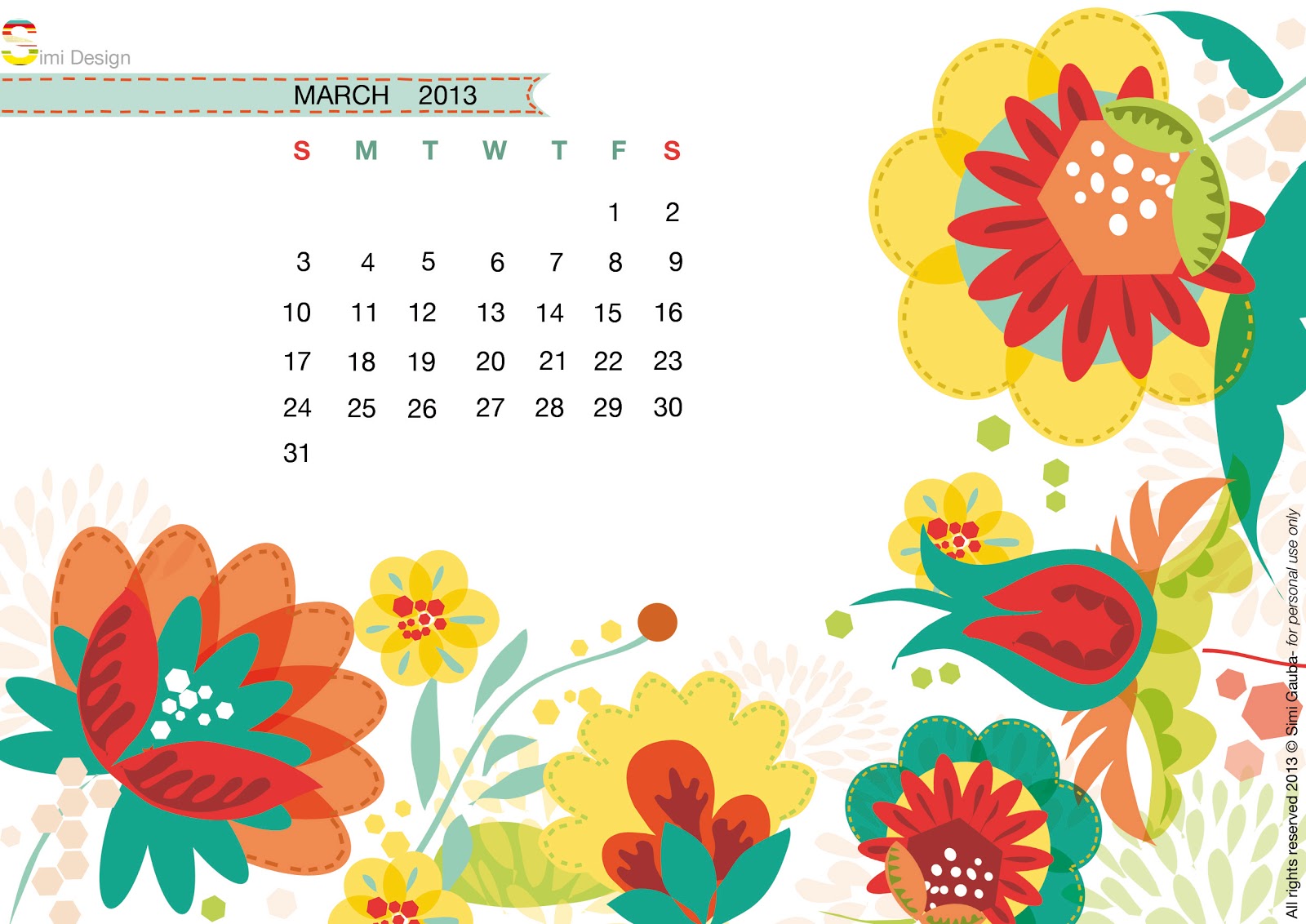 SimiDesign: Simi Design Free Downloadable Calendar March 2013