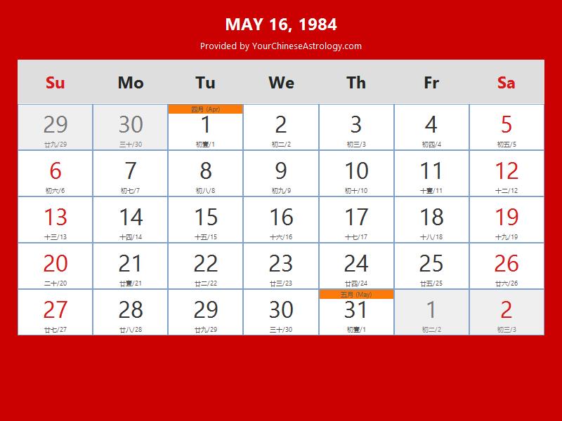 Chinese Calendar May 16 1984: Auspicious Things to Do and Hours Bazi